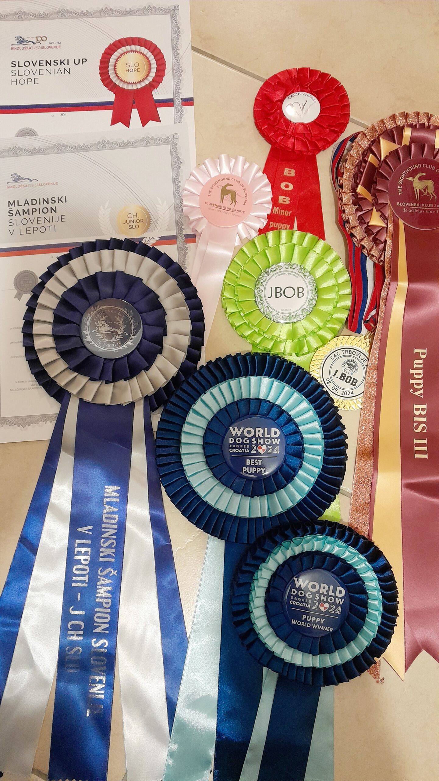 Tika se lahko pohvali z izjemno razstavno kariero, vključno s sodelovanjem na Svetovni razstavi psov v Zagrebu, kjer je na mednarodni sceni pokazala svojo eleganco, gracioznost in odlično konformacijo.